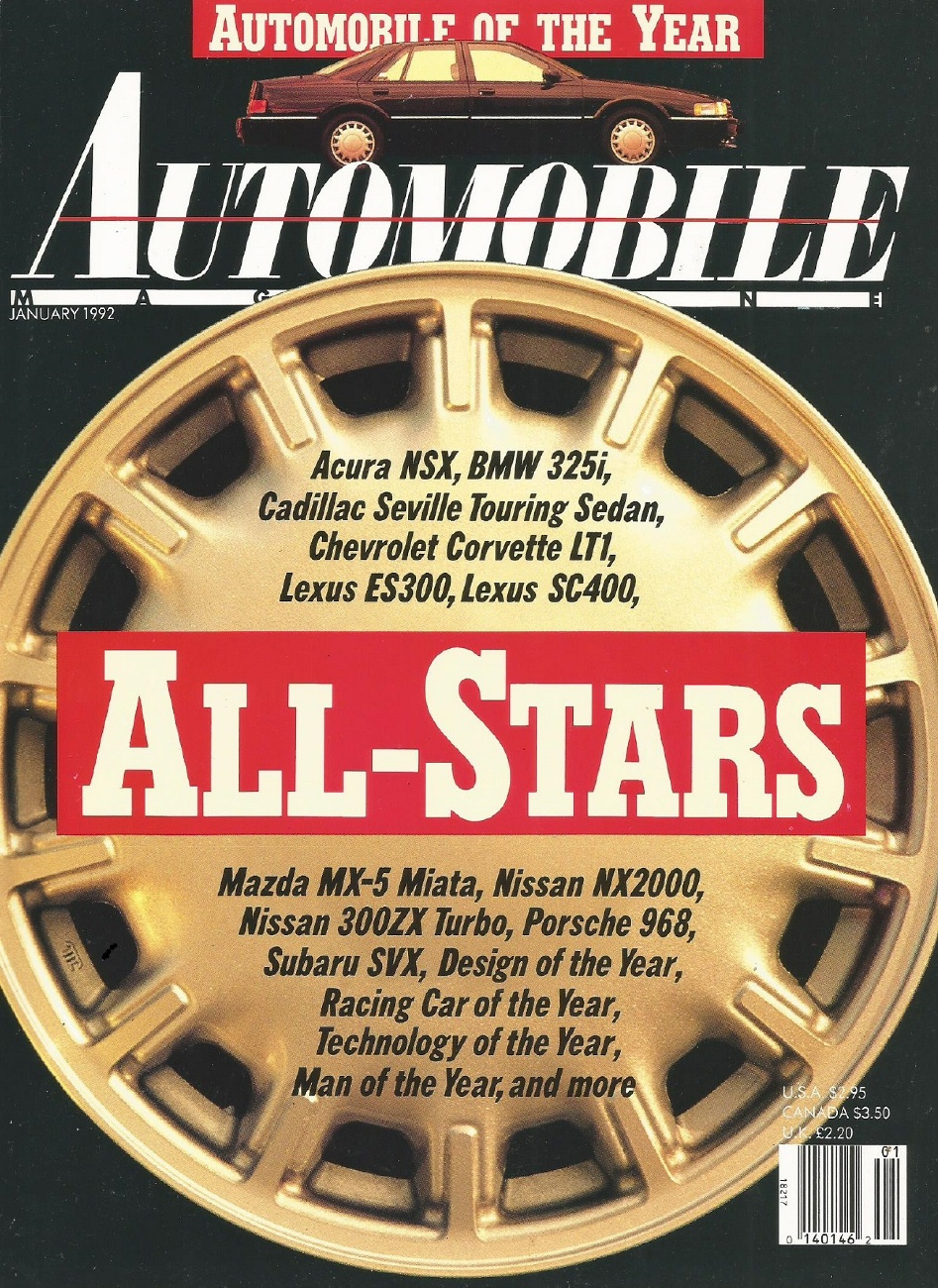 1) ALL-STAR CARS: Acura NSX, BMW 325i, Chevrolet Corvette LT1, Lexus ES300, Lexus SC400, Mazda MX-5 Miata, Nissan NX2000, Nissan 300ZX Turbo, Porsche 968, Subaru SVX