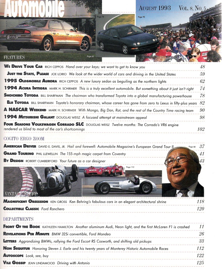 Reviews AUTOMOBILE 1993 AUG - '95 AURORA, '94 INTEGRA, '94 GALANT, CORRADO SLC, TOYODA