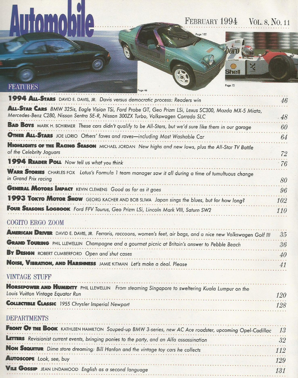 AUTOMOBILE 1994 FEB - BMW 325is, EAGLE VISION, PRIZM LSI, MIATA, SENTRA SE-R