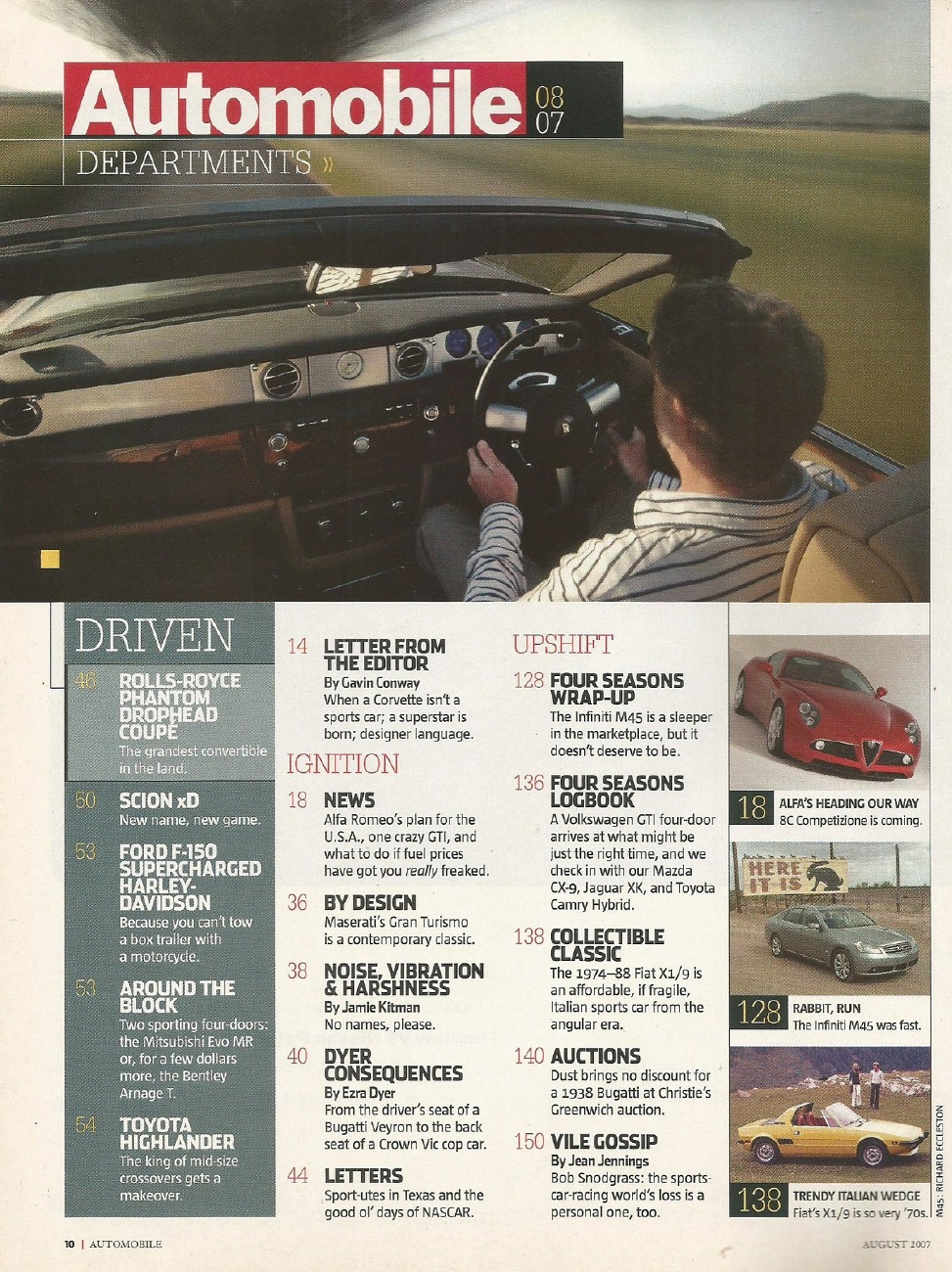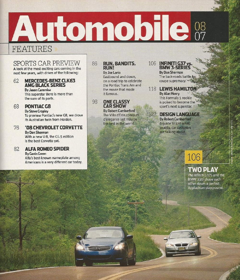 AUTOMOBILE 2007 AUG - AURI TT, PORSCHE GT, F460, CLK63 AMG, G8