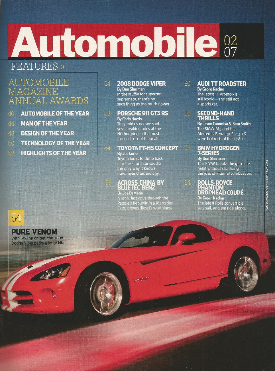 Reviews AUTOMOBILE 2007 FEB - VIPER, 911 GT3 RS, AUTI TT, VW GTI, LR2