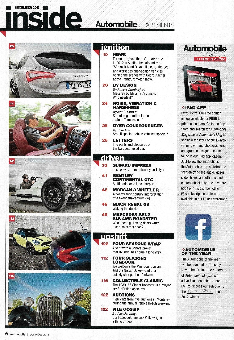 AUTOMOBILE 2011 DEC - VELOSTER, BEETLE, MINI COOPER COUPE, IMPREZA, REGAL GS