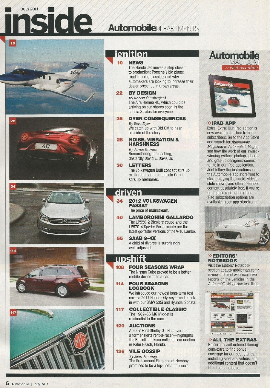 AUTOMOBILE 2011 JULY - PASSAT, 9-4X, GALLARDOs & LP700-4, MIDGET