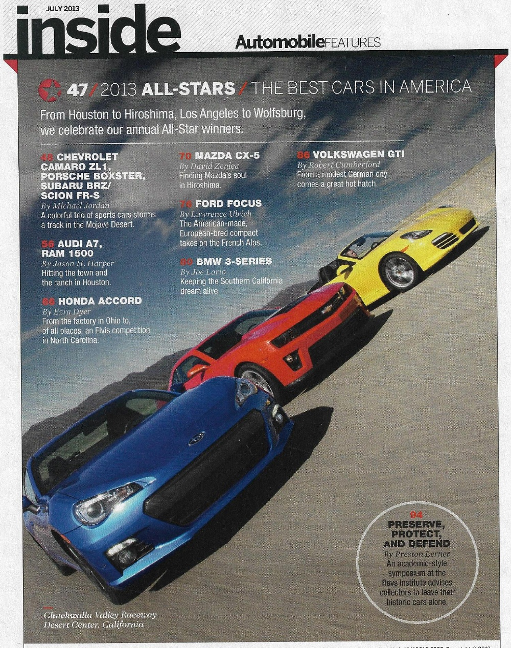 AUTOMOBILE 2013 JULY - CAMARO ZL1, BOXTER, SCION, A7, RAM 1500, FOCUS, ACCORD