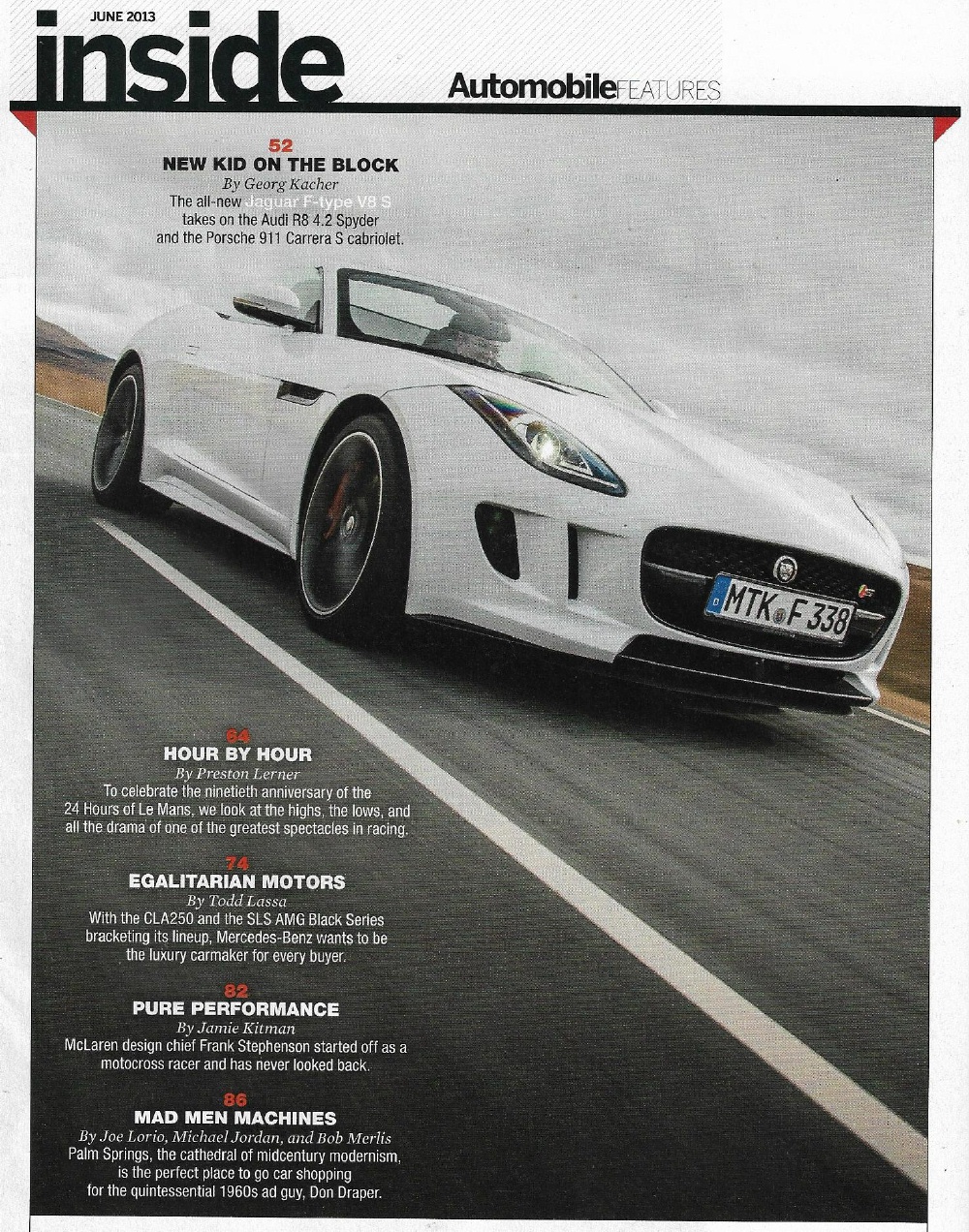 Reviews AUTOMOBILE 2013 JUNE - LE MANS, CLA250, MCLAREN, JAGUAR, AUDI R8 SPYDER, JAG F