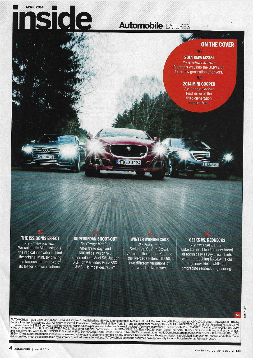 AUTOMOBILE 2014 APR - MINI COOPER S, M235i, AUDI S8 VS JAGUAR XJR, VS MERCEDES