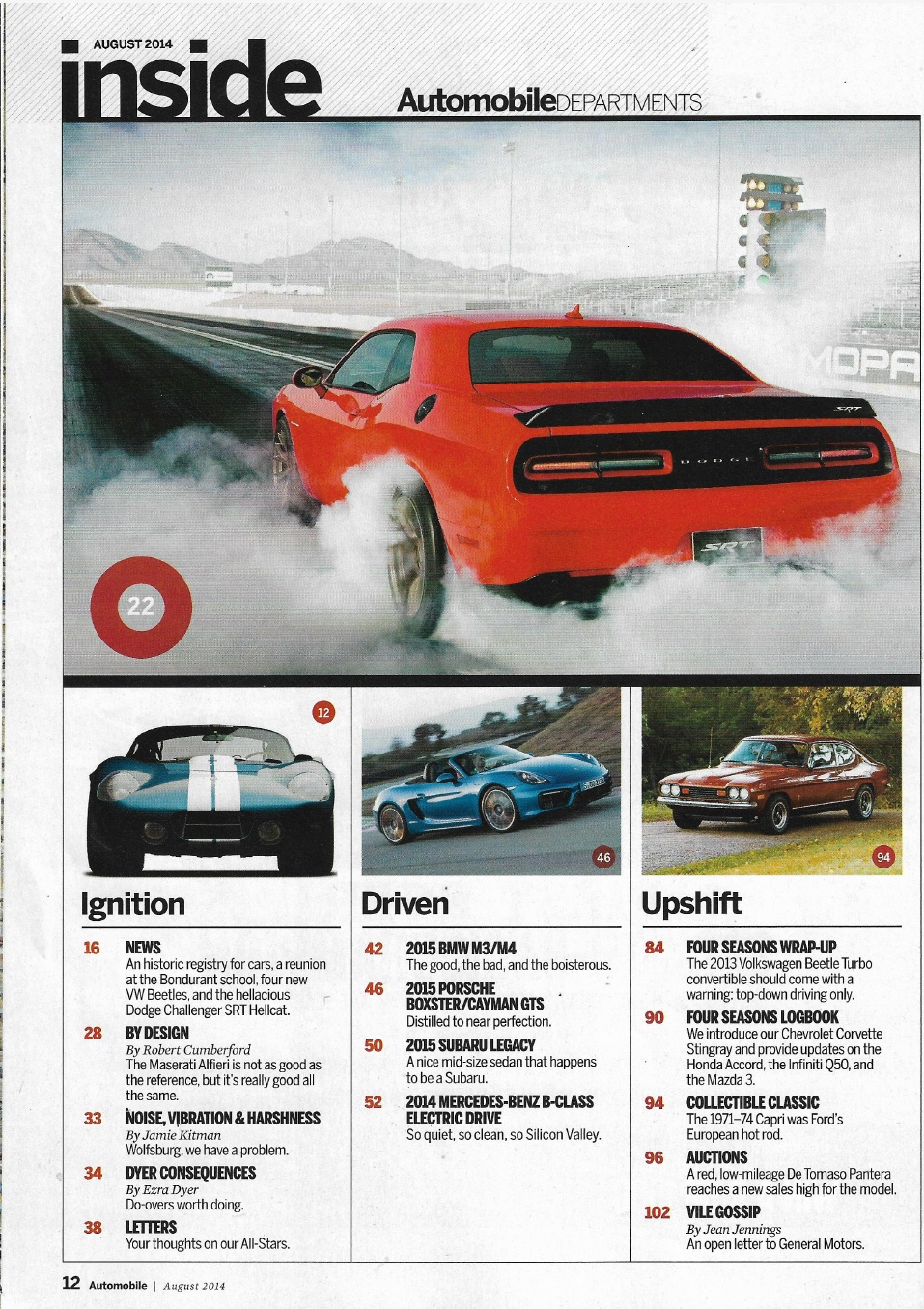 Reviews AUTOMOBILE 2014 AUG - PORSCHE 718, MAZDA MIATA, M3 & M4, BOXSTER GTS, CAMARO
