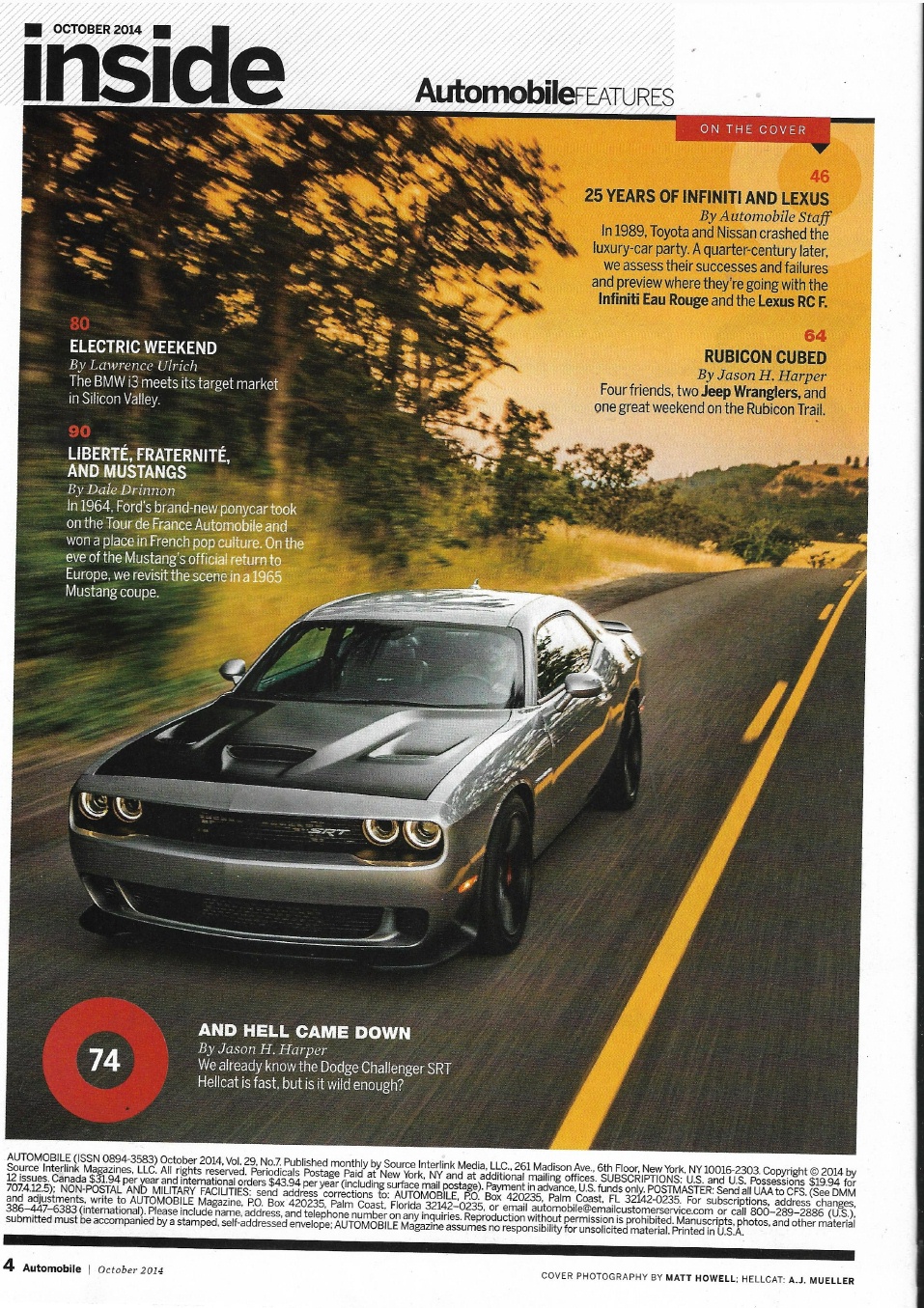 AUTOMOBILE 2014 OCT - LEXUS & INFINITI AT 25, SRT HELLCAT, BMW i3, EAU ROUGE