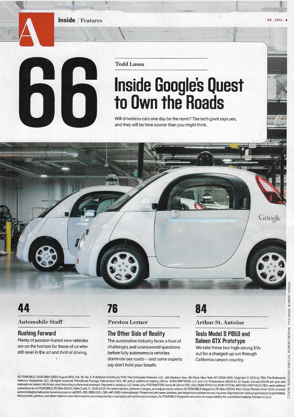 AUTOMOBILE 2015 AUG - BUGATTI CHIRON,DRIVERLESS, TESLA MODEL S P85D, SALEEN GTX