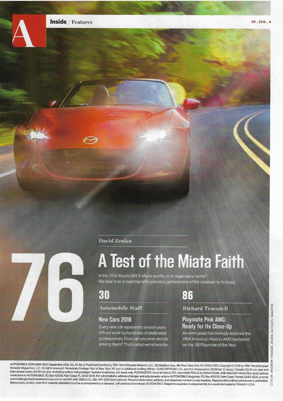 AUTOMOBILE 2015 SEPT - MAZDA MX-5 MIATA, VIPER ACR, CADDILAC CT6, SHELBY GT350