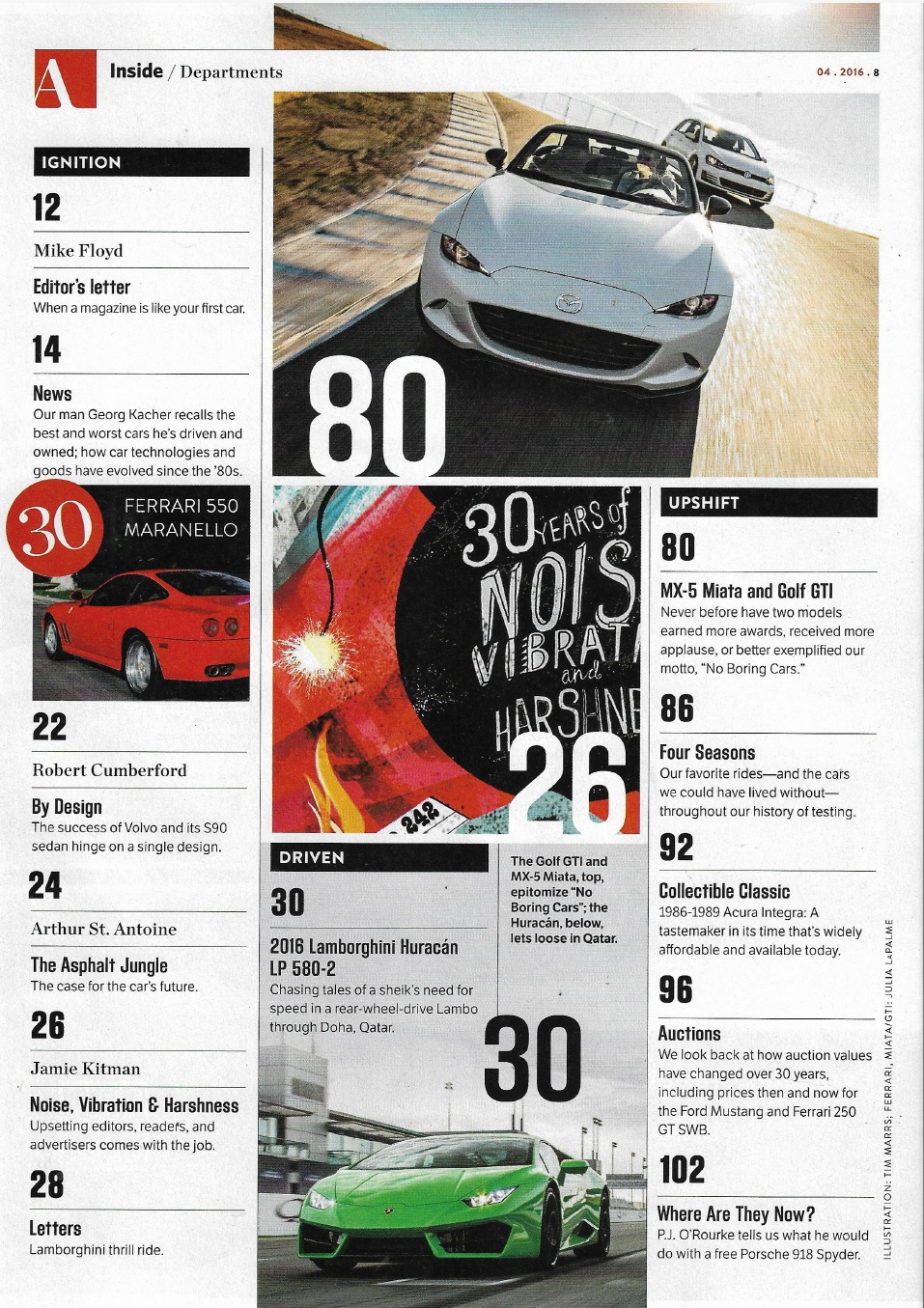 AUTOMOBILE 2016 APR - 30TH ANIV, VW GOLF GTI, MAZDA MX-5 MIATA, VOLVO S90 SEDAN