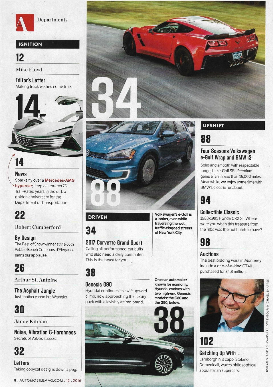 AUTOMOBILE 2016 DEC - 3D PRINTED CAR, CENESIS G90, CORVETTE GRAND SPORT, BMW i3