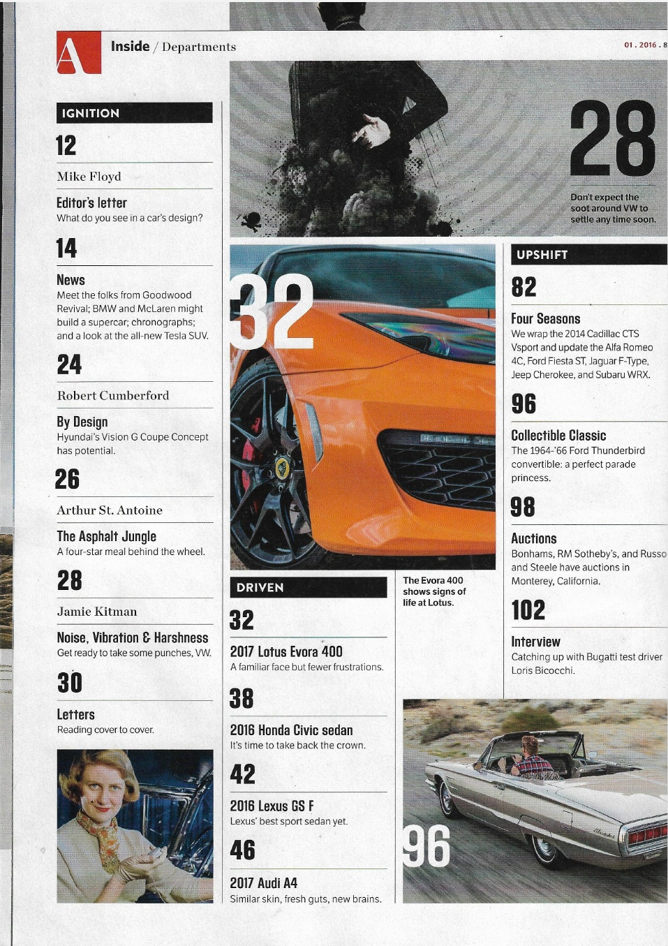 Reviews AUTOMOBILE 2016 JAN - FORD GT,TESLA SUV, HYUNDAI CONCEPT, T-BIRDS, LEXUS GS F