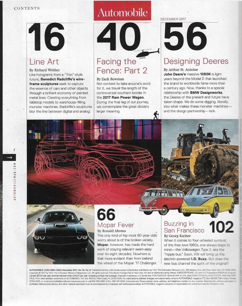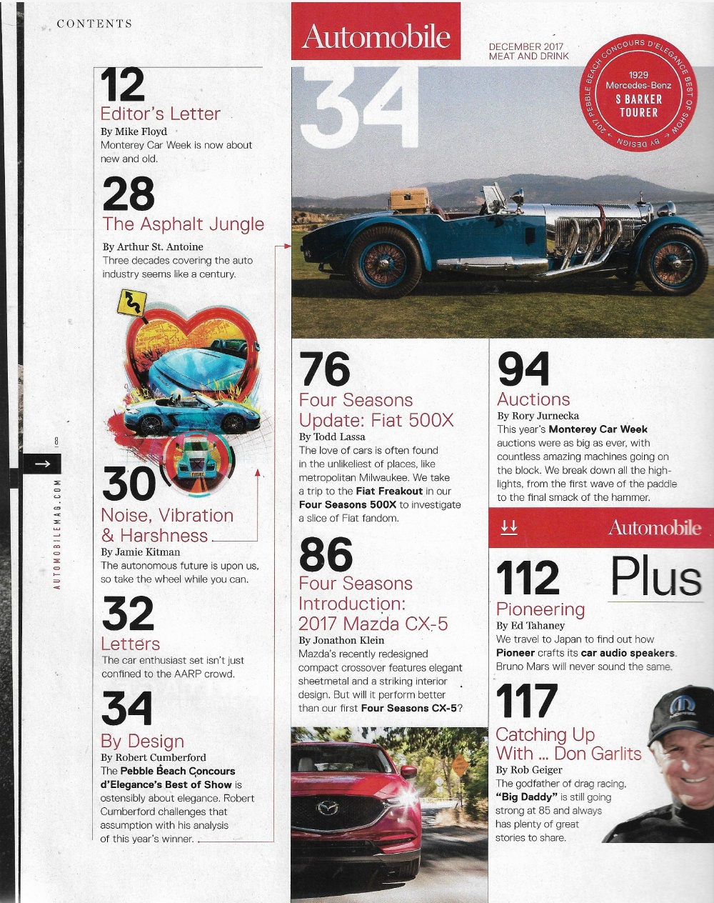 AUTOMOBILE 2017 DEC - DON GARLITS, BMW/DEERE, '29 M-B S BARKER TOURER,FIAT 500X