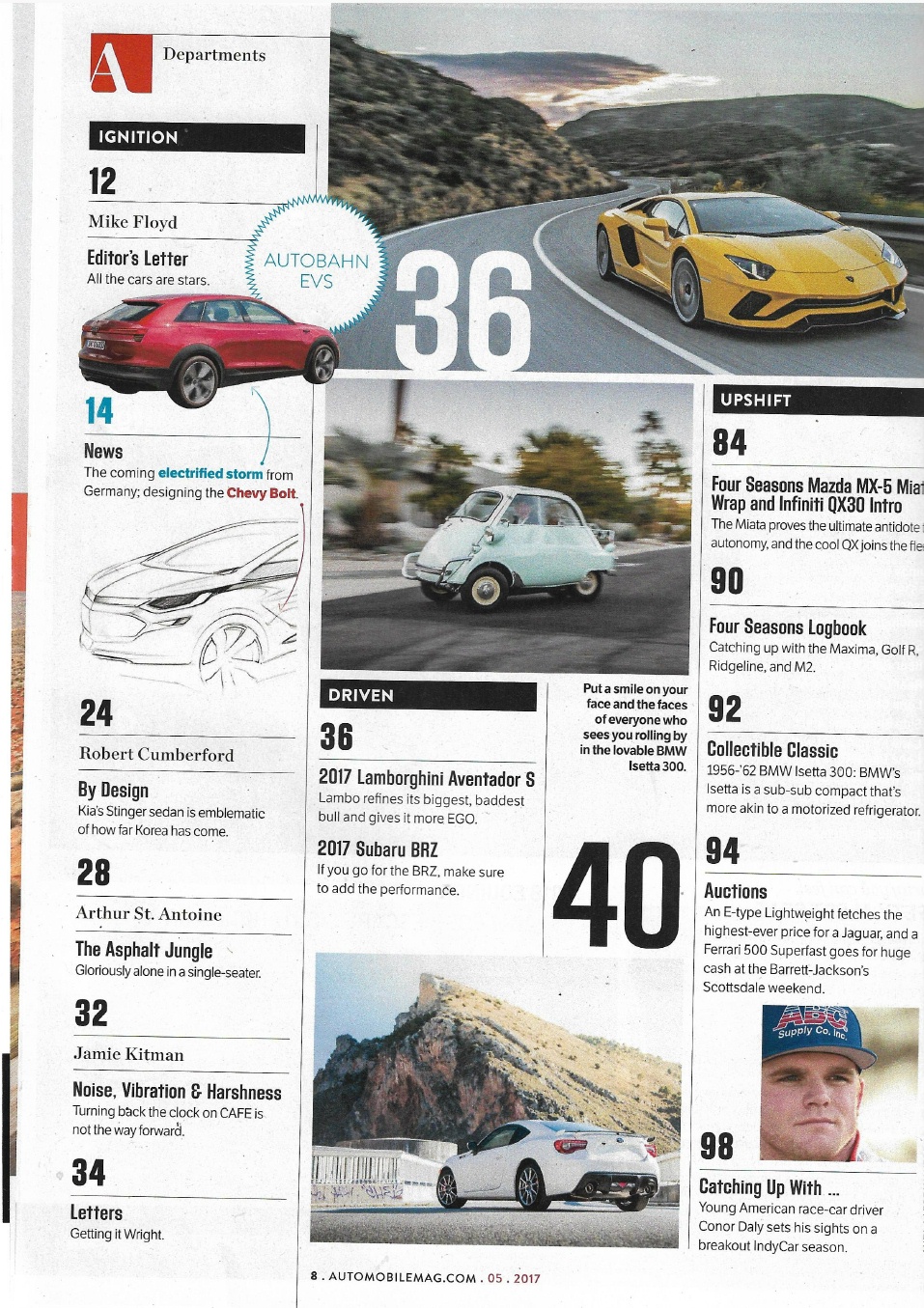 AUTOMOBILE 2017 MAY - BOLT, AVENTADOR S, MAZDA MX-5 MIATA WRAP, INFINITI QX30