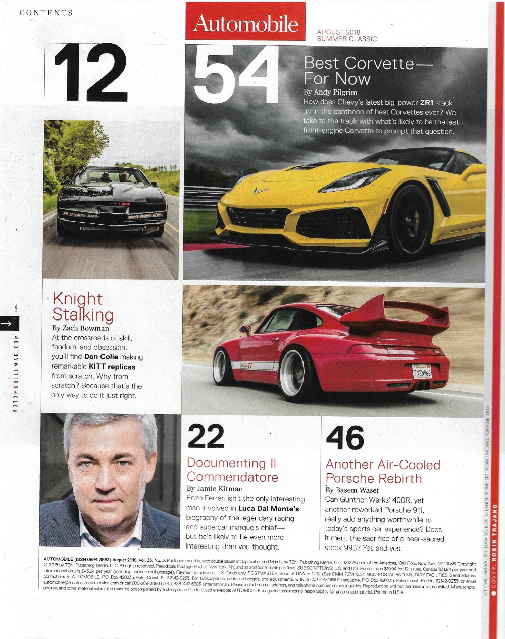 AUTOMOBILE 2018 AUG - ZR1, PORSCHE 993, '80'S KNIGHT RIDER, ENZO FERRARI