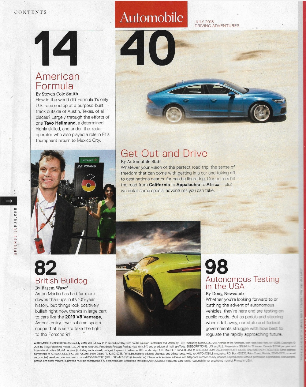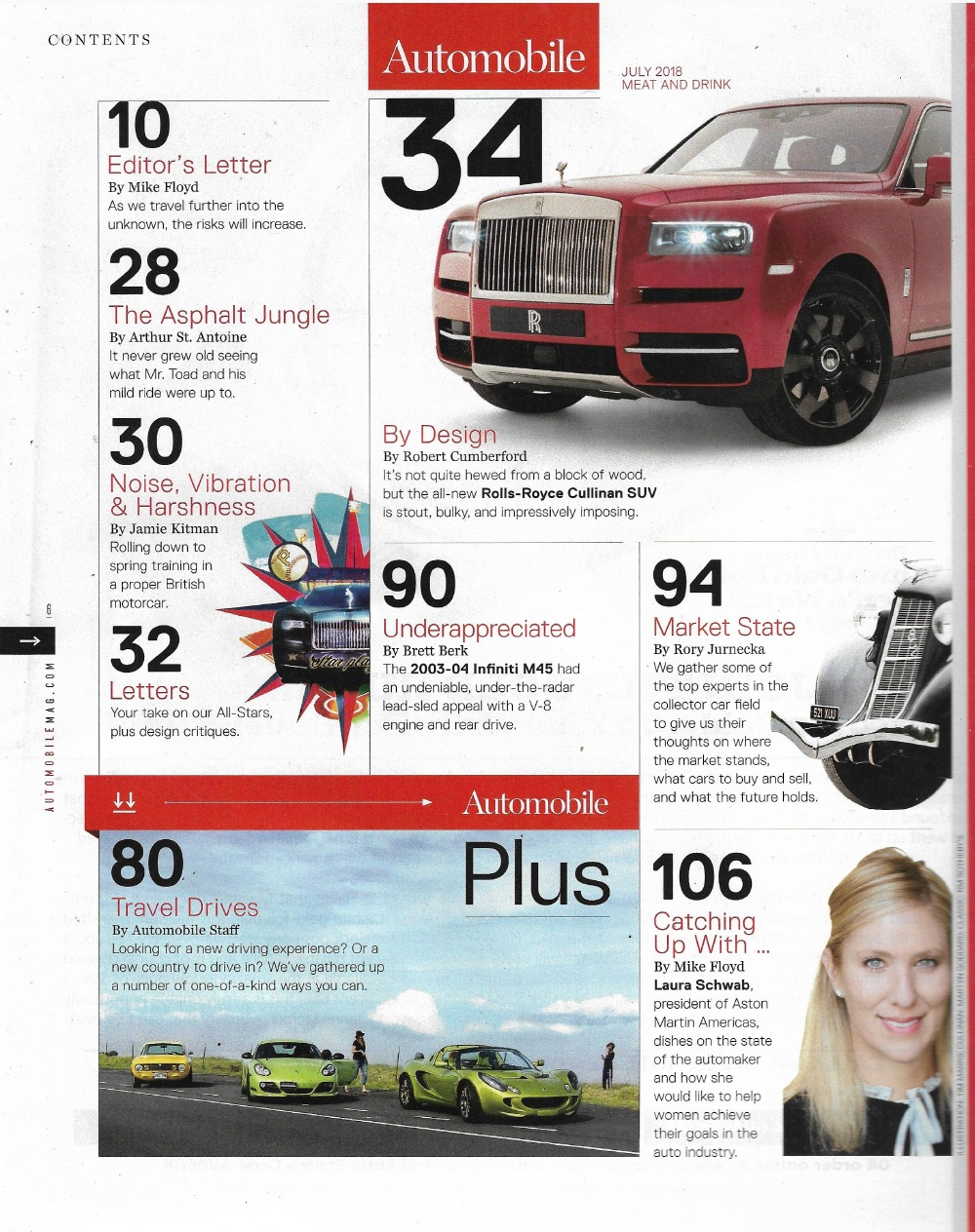 AUTOMOBILE 2018 JULY - ASTON MARTIN V8 VANTAGE, INFINITI M45, R-R CULLINAN SUV