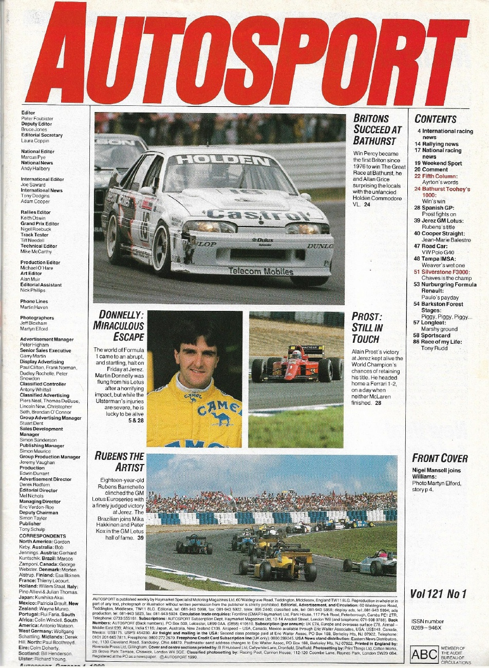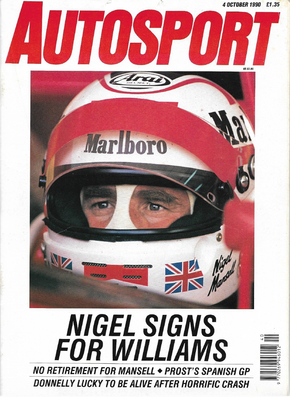 AUTOSPORT 1990 OCT 04 - NIGEL, ALAIN PROST, WIN PERCY, DONNELLY, BARRICHELLO