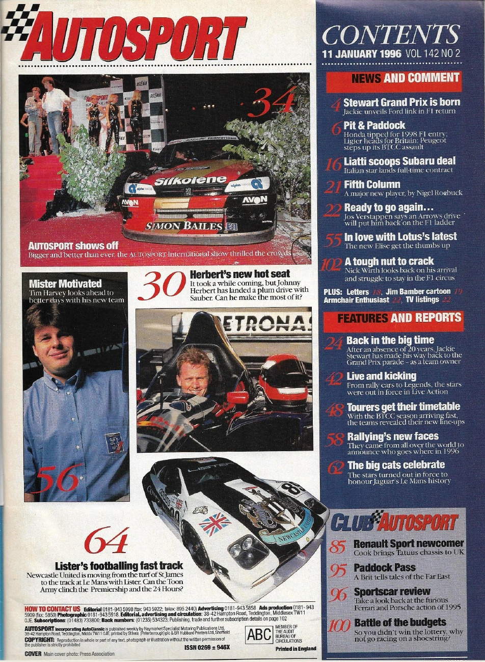 AUTOSPORT 1996 JAN 11 - JACKIE STEWART, JOHNNY HEBERT, LISTER