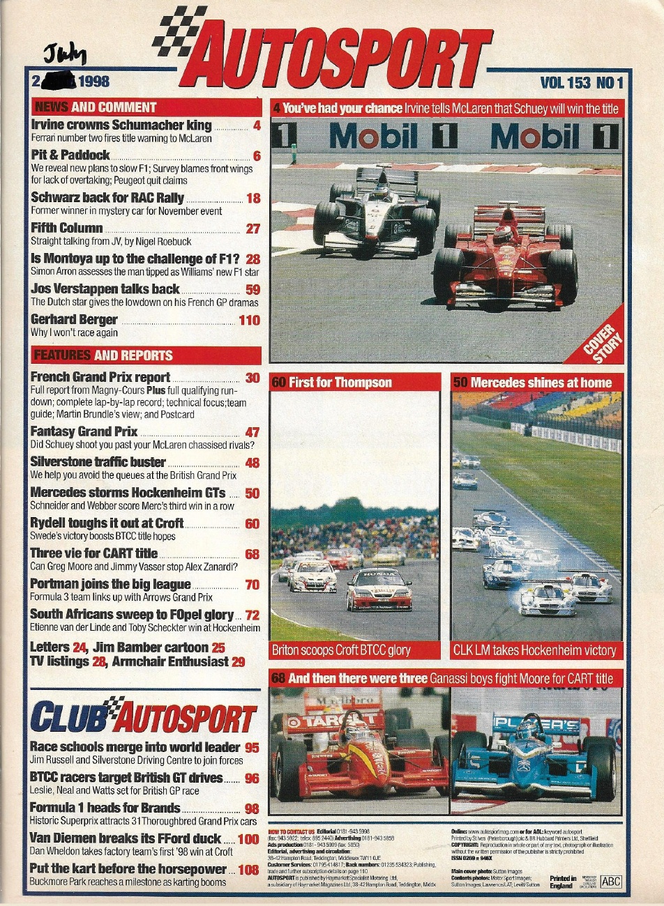AUTOSPORT 1998 JULY 02 - FRENCH GRAND PRIX, BRITISH GRAND PRIX, SCHWARZ,BERGER