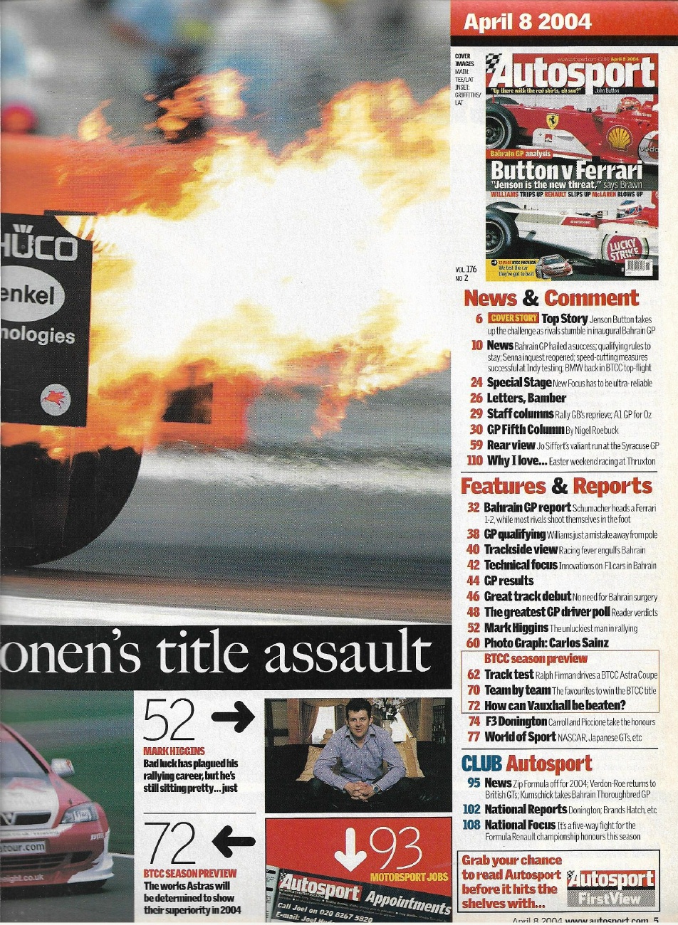 Reviews AUTOSPORT 2004 APR 08 - BAHRAIN GP, GREATEST GP DRIVER POLL, MARK HIGGINS,SAINZ