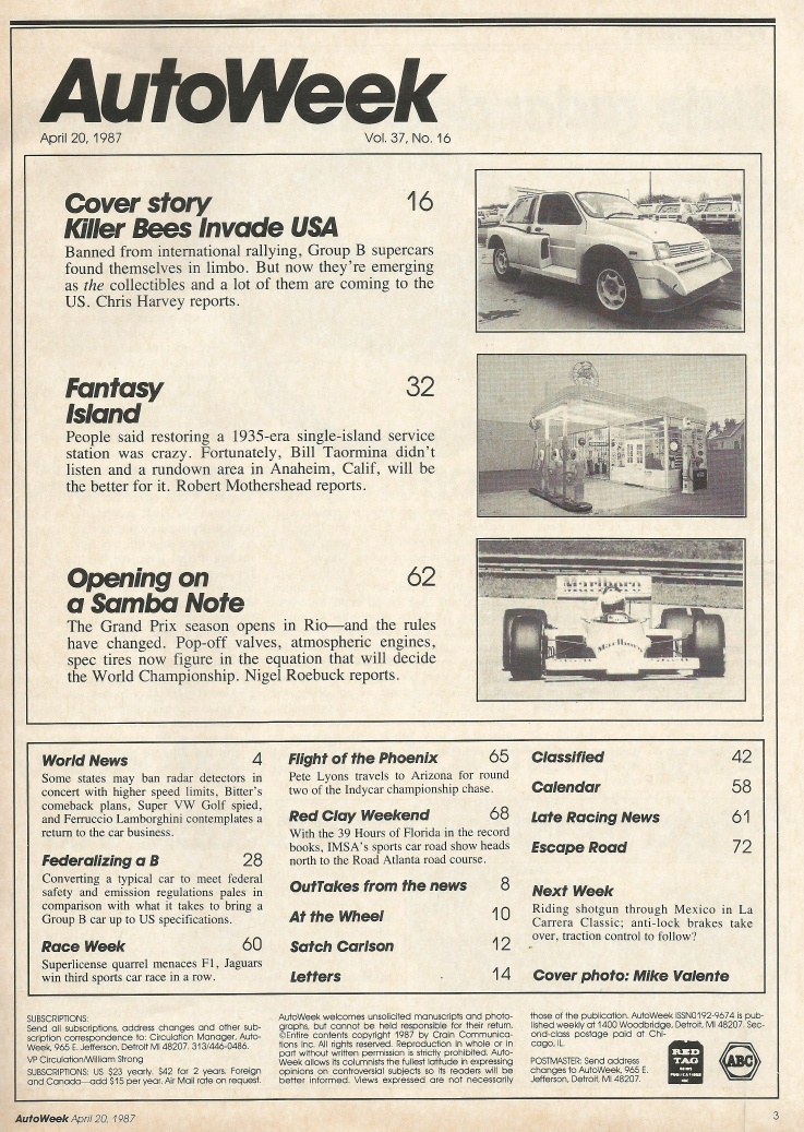 Reviews AUTOWEEK 1987 APR 20 - RS200, AUDI SPORT QUATTRO, DELTA S4, PEUGEOT 205 T*