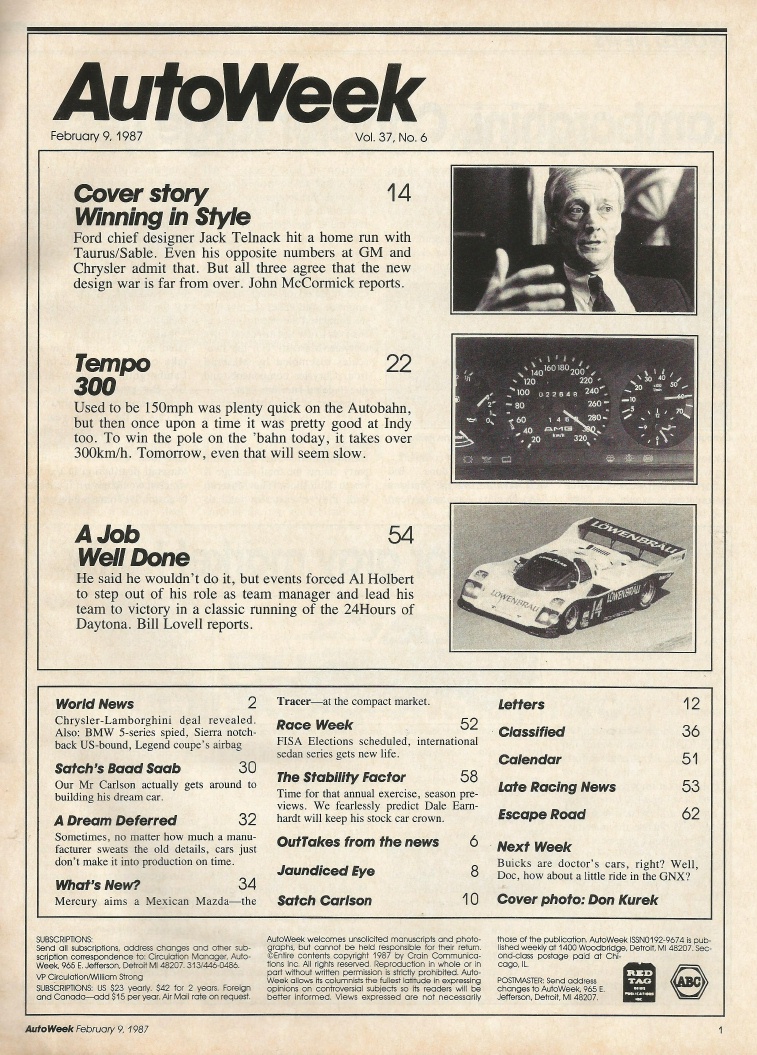 Reviews AUTOWEEK 1987 FEB 09 - HOLBERT-PORSCHE 962-LeMANS, LAMBO & CHRYSLER DEAL