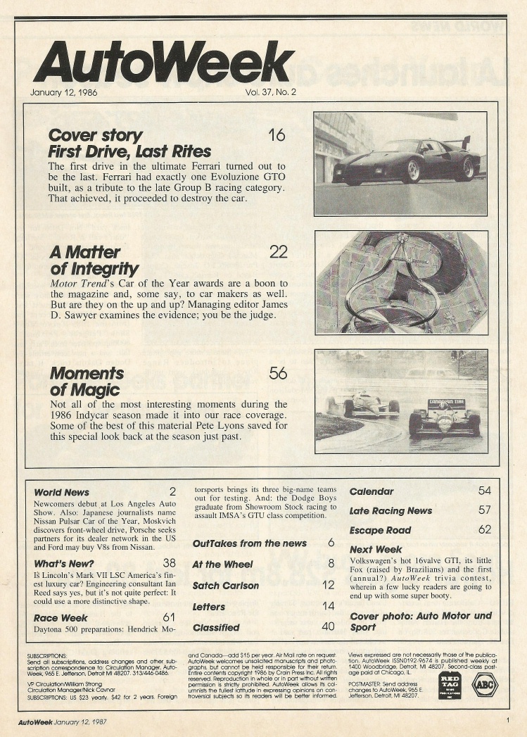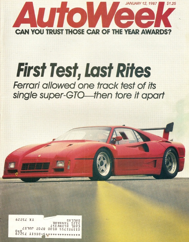 Reviews AUTOWEEK 1987 JAN 12 - FERRARI EVOLUZIONE GTO, LINCOLN LSC, DAYTONA 500, GTU