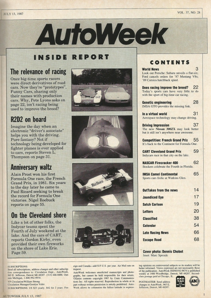 Reviews AUTOWEEK 1987 JULY 13 - MUSTANG GT, RACECAR & STREET CARS, RADFORD ALFA GTA