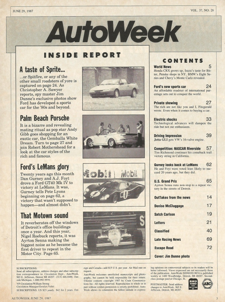 Reviews AUTOWEEK 1987 JUNE 29 - ACTIVE SUSPENSION, NEW SS, 1967 FORD GT40 Mk 4 7-LITER