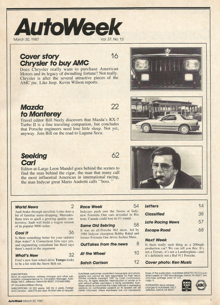 Reviews AUTOWEEK 1987 MAR 30 - RX-7 TURBO, LANCIA AURELIA GT 2400, PORSCHE-SEBRING
