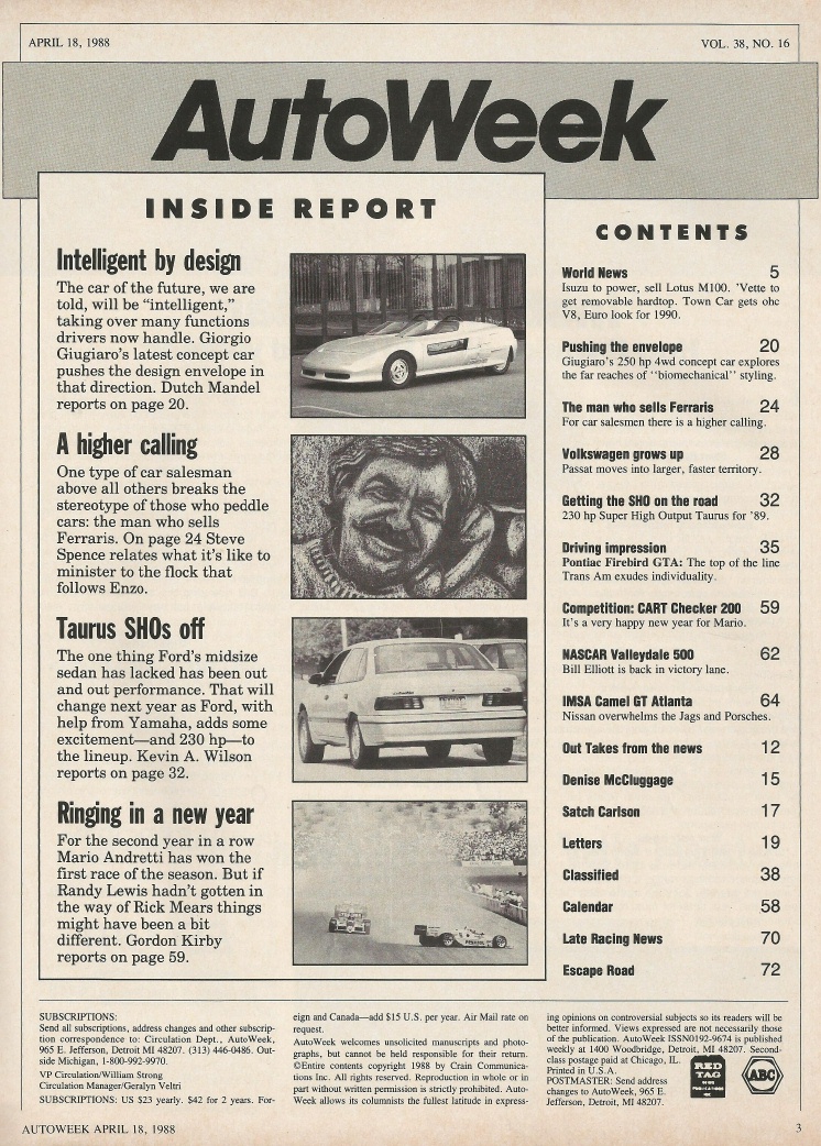 Reviews AUTOWEEK 1988 APR 18 - TAURUS SHO, MONACI BI-MOTORE, ITALDESIGN 4WD AZTEC