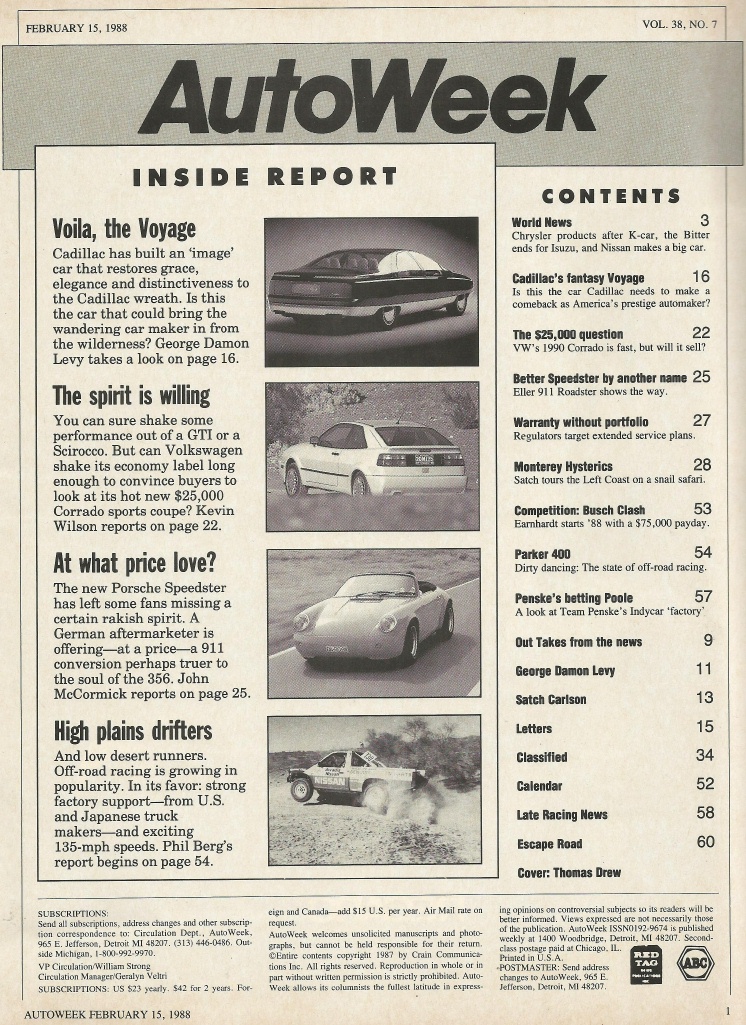 Reviews AUTOWEEK 1988 FEB 15 - CADDY VOYAGE, VW CORRADO RV6, ELLERS 911 ROADSTER