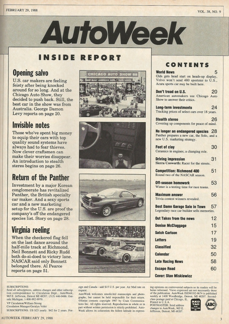 Reviews AUTOWEEK 1988 FEB 29 - NEW CAPRI XR2, PANTHER SOLO, MARMON V16, SMOKEY SALE