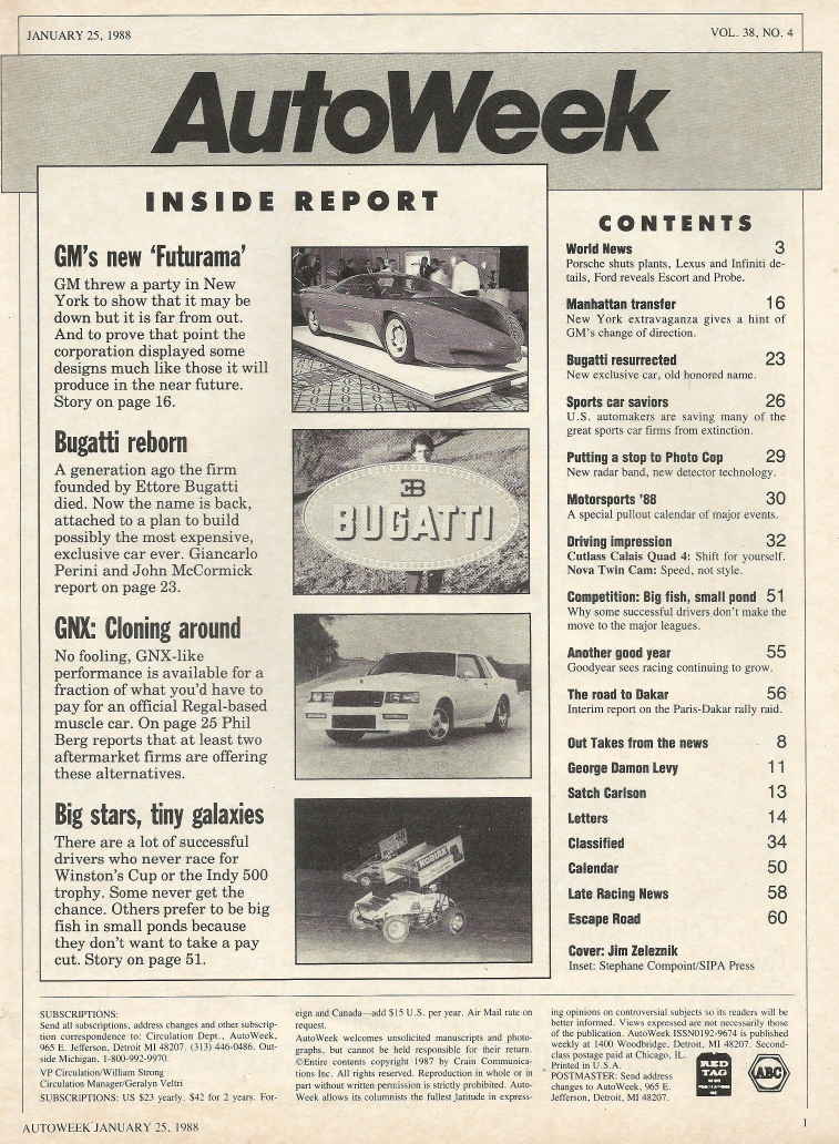 Reviews AUTOWEEK 1988 JAN 25 - BUICK GNX BUILT, GM CONCEPTS, REBORN BUGATTI, GT350H