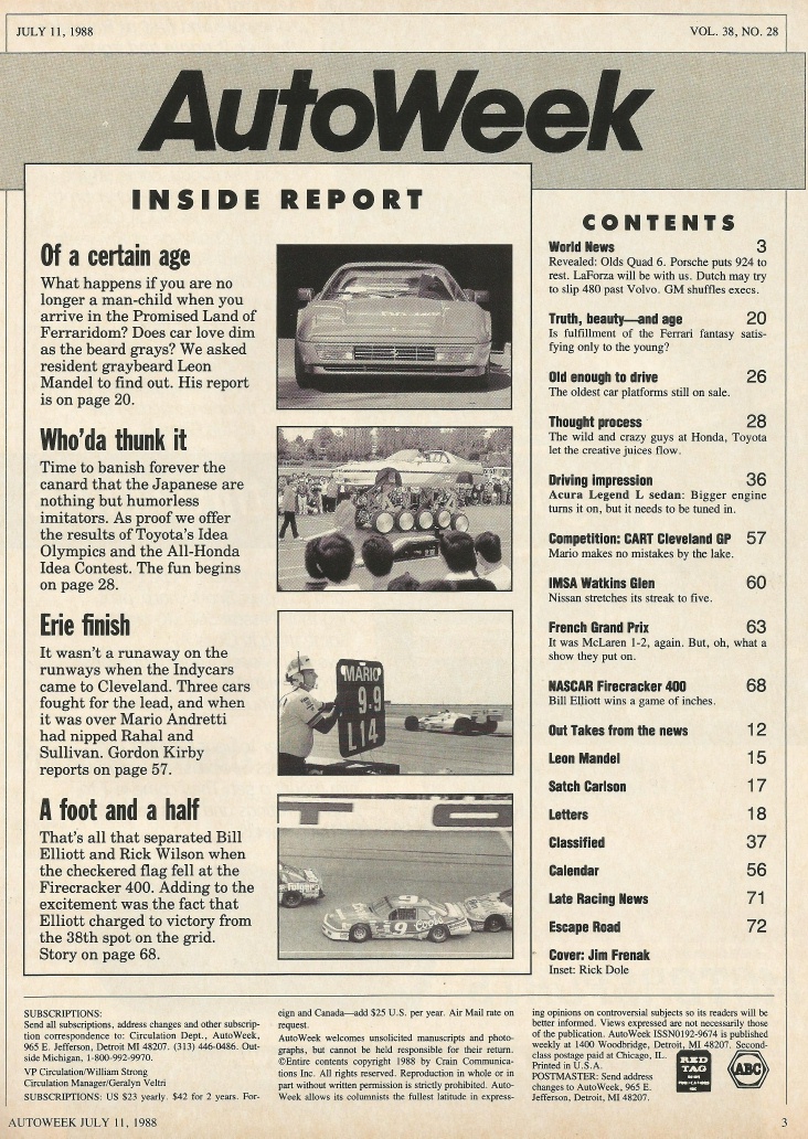 Reviews AUTOWEEK 1988 JULY 11 - 328 GTS, TOYOTA & HONDA IDEAS, IMSA, KURTIS 500