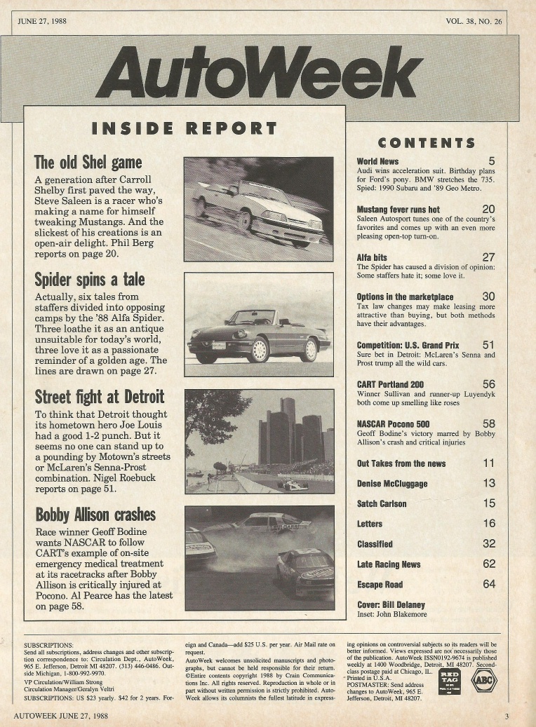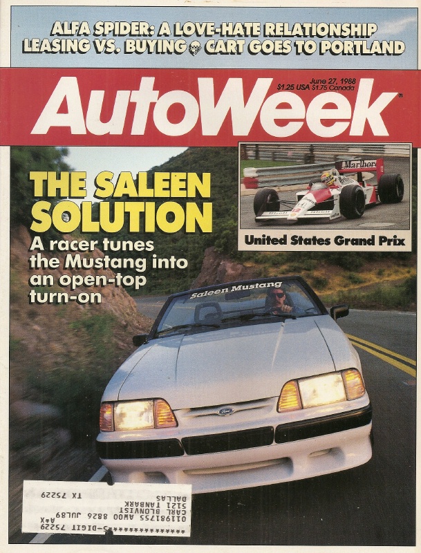 Reviews AUTOWEEK 1988 JUNE 27 - SALEEN MUSTANG, ALFA SPIDER VELOCE, BOBBY ALLISON