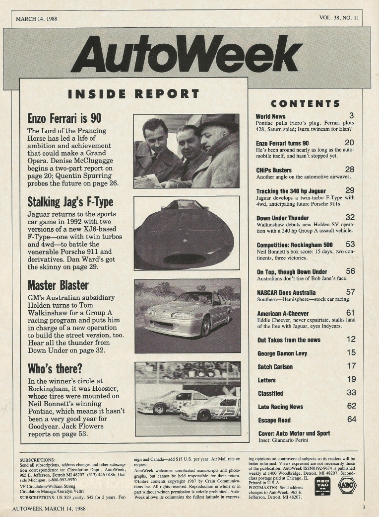 Reviews AUTOWEEK 1988 MAR 14 - JAG TWIN TURBO 4WD F-TYPE, ENZO, SILVER GHOST 40-50