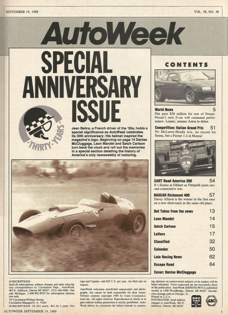 Reviews AUTOWEEK 1988 SEPT 19 - 30th ANNIVERSARY ISSUE, ‘58 CADILLAC ELDORADO BIARRITZ