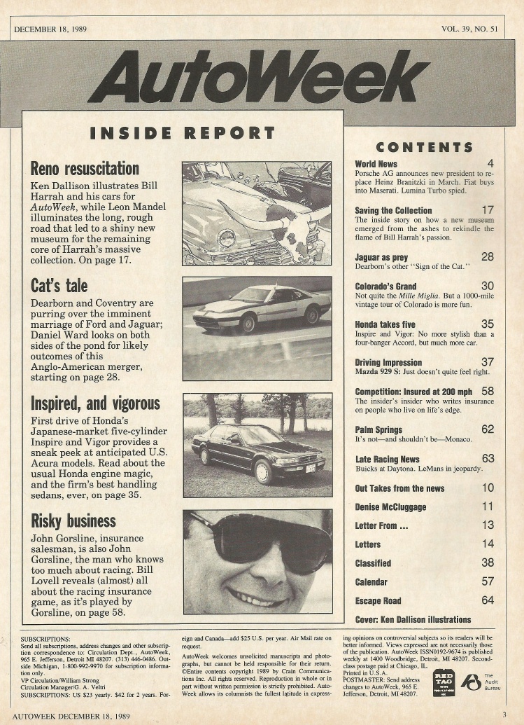 Reviews AUTOWEEK 1989 DEC 18 - HARRAH CARS, MAZDA 929 S, 1910 MARION ROADSTER, VIGOR*