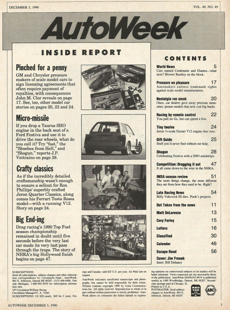 Reviews AUTOWEEK 1990 DEC 03 - FESTIVA SHOGUN, MODELS, NHRA FINALS at POMONA, BRICKLIN