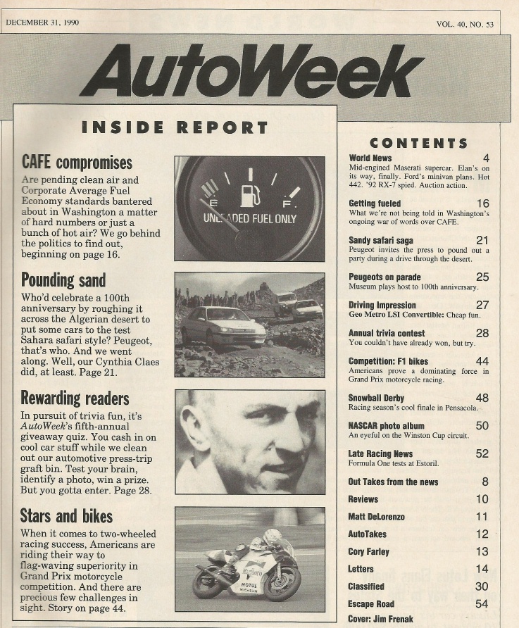 Reviews AUTOWEEK 1990 DEC 31 - COLUMBO’s PEUGEOT, TRIVIA, CAF? DEBATE, AFRICA PEUGEOT