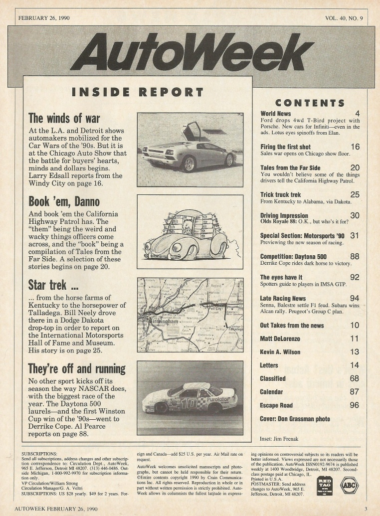 Reviews AUTOWEEK 1990 FEB 26 - MOTORSPORT PREVIEW, DIABLO, DAYONA RESULTS, CHiP