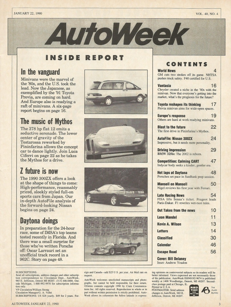 Reviews AUTOWEEK 1990 JAN 22 - 318is, MANSELL, 300ZX, FERRARI MYTHOS, DAYTONA PREP