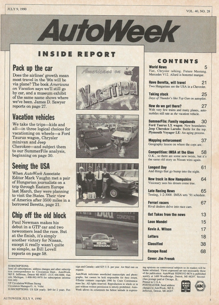Reviews AUTOWEEK 1990 JULY 09 - PAUL NEWMAN, PREVIA, TAURUS WAGON, PACKARD ONE TWENTY
