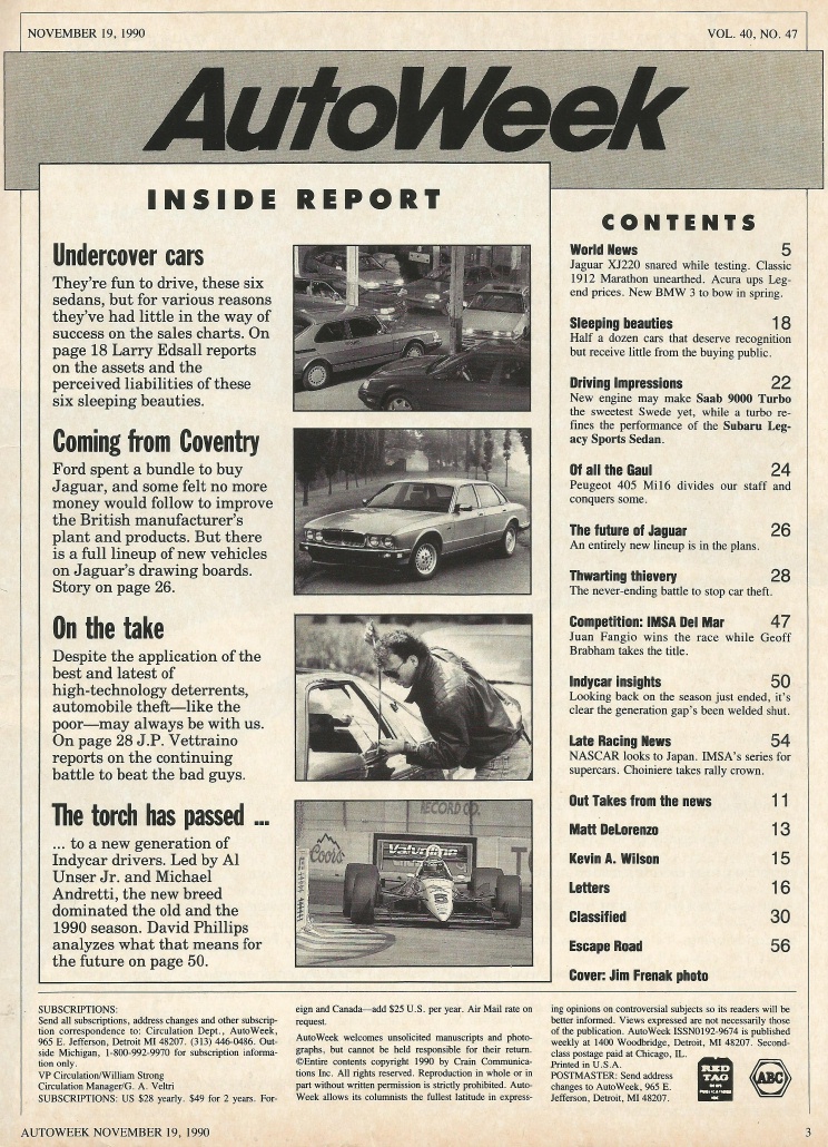 Reviews AUTOWEEK 1990 NOV 19 - PEUGEOT 405, SLEEPERs, NEW JAGS, SAAB 9000 T, MARLIN