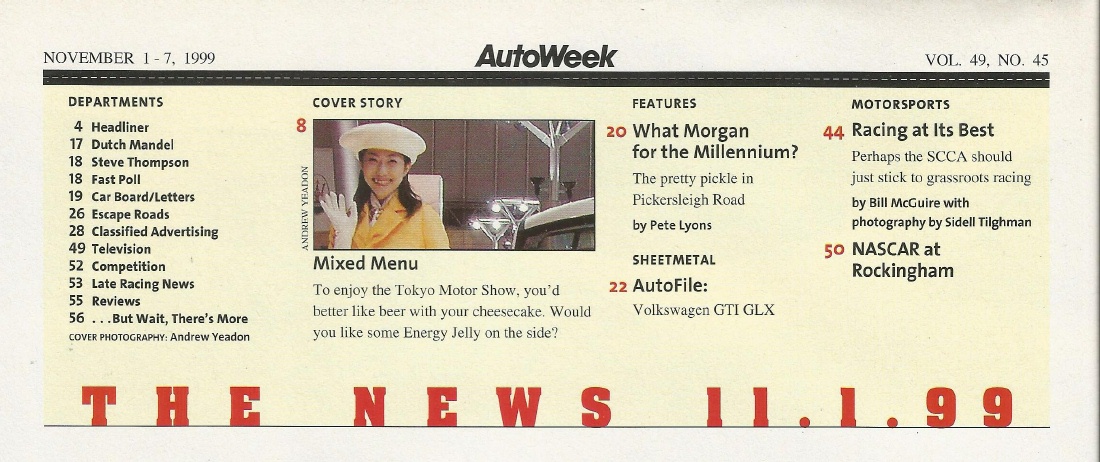 Reviews AUTOWEEK 1999 NOV 01 - VW GTI GLX, '72 MERCURY CAPRI T/A, TOKYO AUTO SHOW