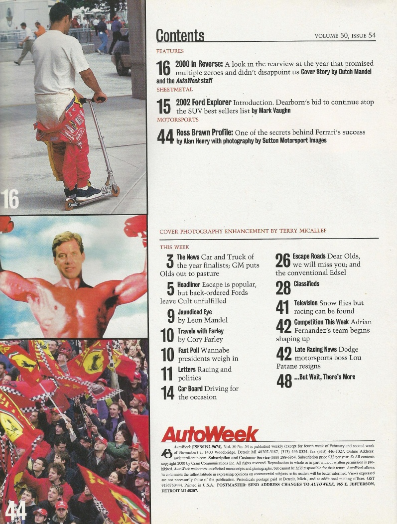 Reviews AUTOWEEK 2000 DEC 25 - ROSS BRAWN, '60 EDSEL RANGEDR CONVERTIBLE, EXPLORER