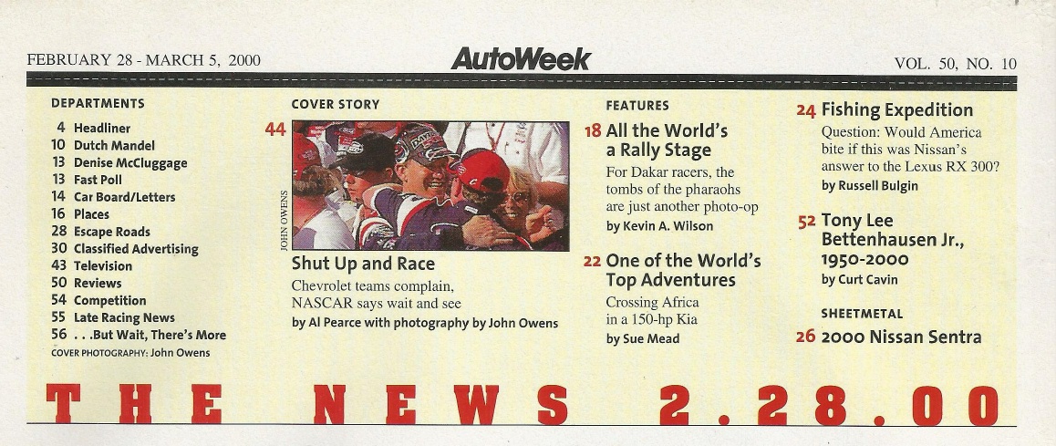 Reviews AUTOWEEK 2000 FEB 28 - DAYTONA, '31 MORGAN SS, MONTERO & KIA AT DAKAR RALLY