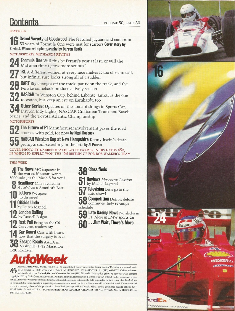 Reviews AUTOWEEK 2000 JULY 17 - MARATHON K-20 ROADSTER, GOODWOOD, JAG XKR ROADSTER